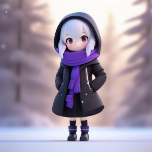 A full body standing cute chibi figure wearing a gingerbread man themed winter outfit, with an excited and happy expression. The design adopts the Pop Mart blind box aesthetic, boasting impeccable clay material texture and perfectly rounded features. This is a high-resolution 8K 3D render, realized through C4D and Octane render engines. Ray tracing and soft studio lighting highlight the cheerful pastel colors. Background: solid snow-white color, clean, simple, no patterns, no textures.