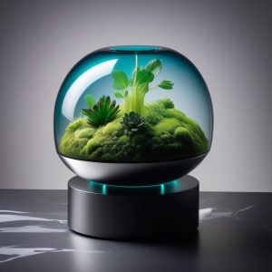 AI art prompt English – Bio-Tech Circuit Board Levitating Cube Product Shot