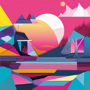 A colorful poster illustration made of bold geometric shapes, overlapping circles and rectangles in saturated tangerine, teal, and magenta. Simple, flat design, modern art vibe, crisp edges, no outlines.