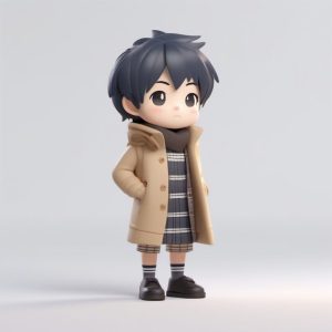 AI art prompt(English) – Trench Coat Chibi Figure Prompt: Cool Winter Fashion 3D Render