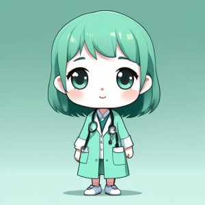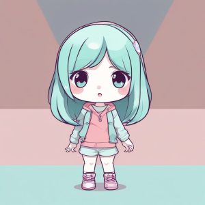 A simple doodle portrait illustration of a Japanese girl’s profile view, executed in minimalist line art. The image uses soft rounded lines for outline, featuring minimal details, capturing an innocent, lighthearted expression. Utilizing gentle shades of baby blue and mint green pastel color palette, creating a charming aesthetic. The background is a solid, clean mint green.