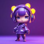 AI绘画提示词中文 – 舒适睡衣Q版角色:毛绒拖鞋与兔子发带,柔和粉蓝色背景