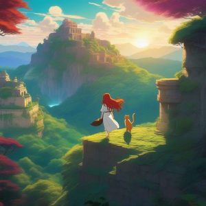 一列老式蒸汽火车,在一片戏剧性的、多色天空下,穿过一片广阔的、被洪水淹没的平原。一名孤独的乘客正在窗边凝视。宫崎骏影响,饱和的色彩,电影感的照明,8k,高度细致的背景,吉卜力动画艺术。