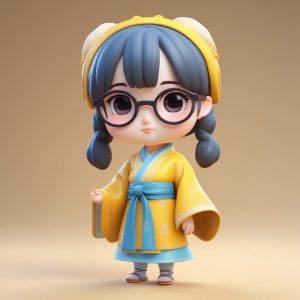 一个全身站立的可爱Q版汉服小女孩,双手捧着一颗红心和一朵花,表情是真诚且充满爱意。精致的盲盒设计风格,有着完美的光滑黏土材质和大头小身比例。通过C4D和Octane渲染实现高细节3D渲染。柔和的工作室照明和光线追踪技术突显温暖的红色和粉色系。背景是纯浅珊瑚色,完全空旷,8K高清。