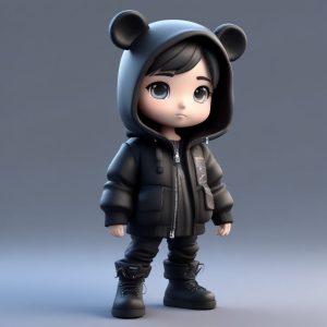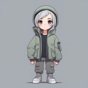 AI art prompt(English) – Advanced SD Prompt: Trendy Techwear chibi girl Minimalist Full Body