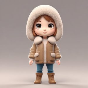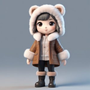 泰迪熊绒帽Q版角色:3D可爱粘土风格全身图生成