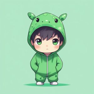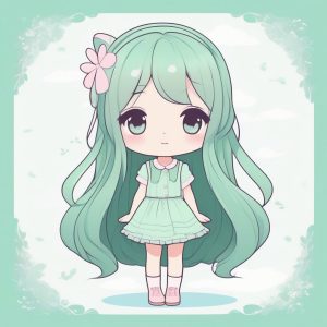 🍬Color Block Chibi Prompt: Geometric Prints, Mint Green BG – AI art prompt(English) :