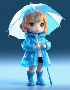 AI art prompt English – Playful Chibi Raincoat Girl Prompt