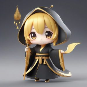 AI绘画提示词中文 – 体育部Q版女孩:手握金色奖杯的动态盲盒手办