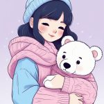 AI art prompt(English) – Cute Doodle Prompt: Girl with Winter Dessert, Pastel Tones