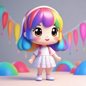A supremely sweet, full body chibi girl standing illustration. Her outfit is covered in bows and frills, and she displays an adorably pouting, wronged expression. This is a high detail, cute 3D render, achieved using C4D and Octane render combined with ray tracing. The figure’s clay material texture makes it a perfect blind box collectible. Soft studio lighting highlights the dreamy pastel colors palette. The Background is a clean, simple solid color, completely empty, with No patterns, No textures, rendered in high detail 8k resolution.