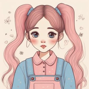 AI绘画提示词(中文) – 甜系日系插画:AI生成双马尾女孩的梦幻纸张纹理