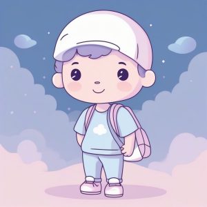 AI绘画提示词中文 – 天真园丁Q版男孩:粉蓝渐变,轻快可爱涂鸦风提示词