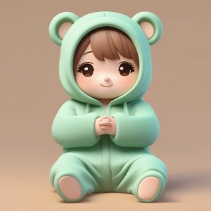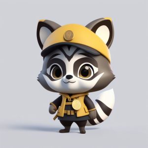 AI绘画提示词中文 – 调皮浣熊耳娘:手持魔法杖的Q版站姿模型