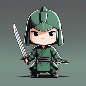 AI art prompt English – Chibi Shaolin Monk in Gong Fu Stance, Pastel Orange Robes, 8K