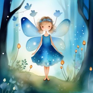 AI art prompt English:A whimsical children’s storybook style illustration of a fantasy fox in a colorful garden, expressive watercolor brushstrokes, vivid flowers with oversized petals, magical atmosphere. The fox has orange fur with sparkling white and blue highlights. Dreamy background with sparkles, twirling vines, and pastel butterflies flying. Soft character shapes and harmonious color blending.