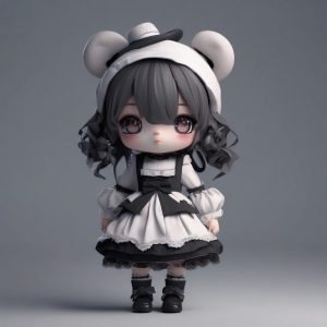 AI art prompt English – Porcelain Dolly Lolita Chibi C4D Render, Delicate Texture