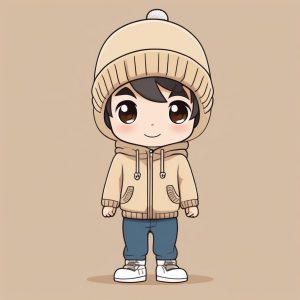 AI art prompt(English) – Knitted Beanie Minimalist Line Art Full Body Wallpaper Prompt