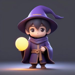 AI绘画提示词中文 – 未来感盲盒:可爱宇航员Q版角色全身站立照,深紫纯色背景