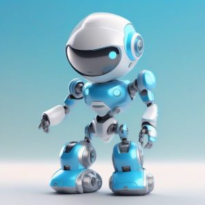 AI绘画提示词中文 – 未来科技风Q版:C4D金属光泽全身渲染,极简青色背景