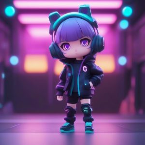 AI art prompt English – Cyber Chibi Boy: Vector Art with Aggressive Liquify and Negative Tones