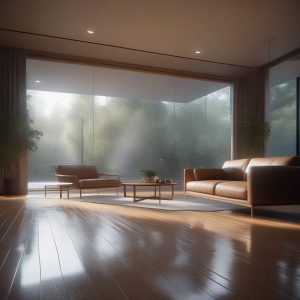 A breathtaking **futuristic building**, an asymmetrical sky tower hovering over a misty chasm. The exterior features a complex **glass facade** system using low-e **structural glazing** panels and polished chrome fins. Illuminated by dramatic, contrastive **volumetric lighting**. **Modern architecture** masterpiece, executed in **hyper-detailed ArchViz** style, showcasing seamless **parametric design** geometry. Cinematic lighting, 8k render, photorealistic, wide angle shot.