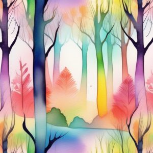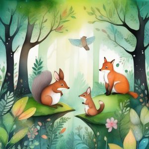 Whimsical watercolor fantasy forest, magical atmosphere, soft pastel hues, enchanted creatures, dreamy light filtering through the trees, lush vegetation, imaginative fairytale vibe, childlike wonder