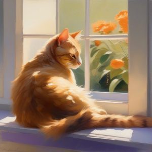 一幅描绘插满野花的花瓶的暖色印象派抽象画作,鲜艳的红、黄、橙色与柔和旋转的笔触交融,花朵用模糊的轮廓进行松散刻画,木制桌面上有跳跃的反光,侧面的温暖阳光倾泻而下,缤纷的色彩斑斓地融合了前景与背景,画面富有表现力、动感和愉悦感。