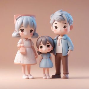 AI art prompt(English) – Family of Three Chibi C4D Octane Render Blind Box Guide