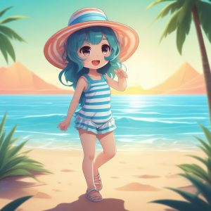 ☀️Summer Chibi Swimsuit Figure 3D Pastel Prompt – AI art prompt(English) :