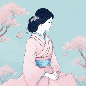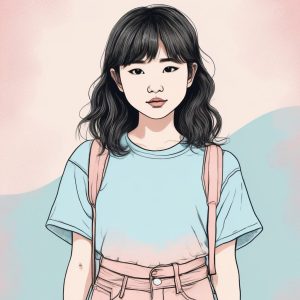 AI art prompt(English) – Summer Freshness: AI Generated Japanese Girl in Pink and Blue Sundress Illustration