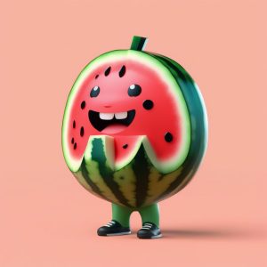 AI绘画提示词中文 – 夏日西瓜主题旗袍:Q版粘土全身立绘,甜蜜表情高精度渲染