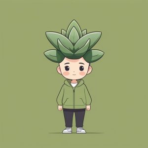 一幅现代极简矢量插画,画面中一株多肉植物栽在小花盆里,位于干净纯净的鼠尾草绿色背景中央。多肉用几何造型、整齐边线和平涂色块组成,展现简约而逼真的视觉感。阴影很少甚至完全省略,突出图形的形态。背景没有任何附加图案、物体或纹理。整体营造出受室内设计潮流启发的安静现代美学。
