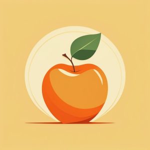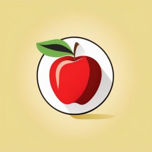 A modern minimalist flat illustration of a bright red apple with a single green leaf, placed on a solid soft beige background. The apple is treated as a simple graphic shape, no gradients or shadows used. The leaf is kept small and clean, and the entire visual is balanced and uncluttered, embodying flat design principles.