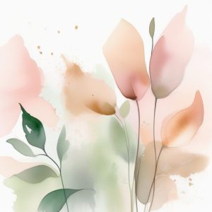 Modern minimalist wallpaper with watercolor floral elements, large soft peonies and leaves, light pastel gradients, subtle paper grain, no outlines, floating botanical arrangement, gentle and elegant graphic design, relaxing and fresh atmosphere