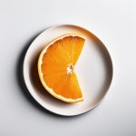 Minimalist vector still life of cute anthropomorphic fruits (apple, pear, orange) sitting together on a simple navy and cream table, textured brushwork, kawaii heart motifs, rounded shapes, warm and joyful, wholesome illustration style for playful kitchen decor