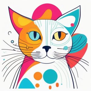 一只猫的侧面肖像,采用流畅的现代主义色块风格插画,造型简化,使用平整、有意的几何形状。配色以珊瑚色、祖母绿、金色和木炭灰的和谐对比为主。背景极为简洁,留有干净的留白和细腻的纸质纹理。整体画作充满精致的美术馆印刷感,非常适合作为装裱装饰或时尚生活方式品牌推广。强调优雅与精致,线条克制,构图平衡。整体氛围现代、静谧、视觉冲击力强。