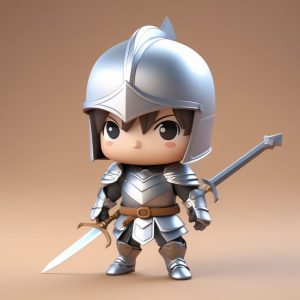 AI art prompt English – Pixelated Chibi Knight 3D Figure Prompt