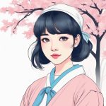 AI art prompt(English) – Xiaohongshu Hot Item: Pink-Blue Baseball Cap Girl Under Minimalist Line Art