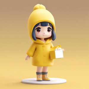 一个独行的极简动漫角色,全身站立照,一个穿着学院风冬装并背着迷你书包的可爱卡哇伊Q版女孩。她处于一个侧身走路的动态姿势中。风格完美契合Pop Mart盲盒美学,拥有精致的粘土质感。这是一个高保真的3D渲染,通过C4D和Octane渲染器实现。表情充满活力且丰富有趣。利用光线追踪和柔和的工作室照明,强调海军蓝和奶油白的柔和色彩。8K高细节渲染。背景为纯浅黄色,干净、简单,完全空白。
