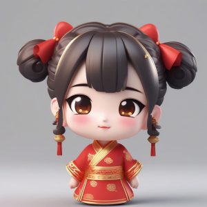 AI art prompt(English) – New Year Chibi Qipao: Festive Red/Gold 3D Blind Box Figurine Prompt