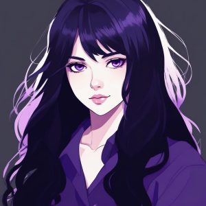 一个极简动漫风格的少女肖像,单主体,独照。她有着深邃的星空蓝紫色长发,眼神中带有好奇。风格为赛璐珞阴影,采用低饱和度的蓝紫色马卡龙色调。背景是纯净的固体深蓝色,简单,完全空旷,没有图案,没有细节。