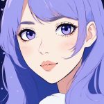 一个特写镜头,描绘一位拥有闪烁星空般眼眸的动漫少女。她的头发呈现出充满活力的紫色和蓝色渐变,仿佛被宇宙的星尘覆盖。背景是深邃的、高细节的宇宙星云,采用动漫风格。光线设计具有新海诚的戏剧性逆光效果,强调发丝的透明感。高饱和度色彩,8K分辨率,极其细致的面部特征。