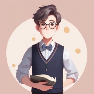 🎓学院派Prep风Chibi少女:高雅蓝背景,书卷气全身像分享 – AI 绘画提示词(中文):
