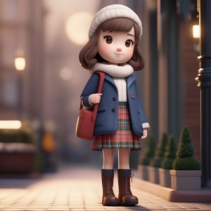 这个Prompt专注于Classic Preppy Style,想要营造一种知性又可爱的感觉。我加入了’Plaid skirt’和’Loafers’等核心元素。背景选用了庄重又清爽的皇家蓝色,突显角色服装的柔和色彩。出图效果非常精致,完全就是极简主义动漫角色的典范,全身站立照非常完美!