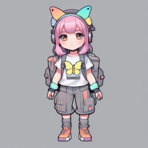 AI art prompt(English) – Y2K Chibi: Cool Illustration of a Girl in Retro Style with Dynamic Pose (8K)