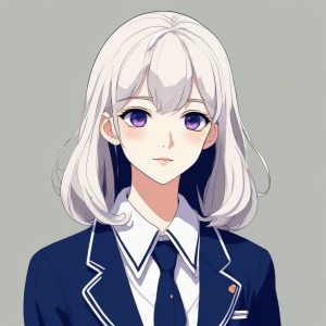 An anime minimalist style girl portrait, single subject, solo, incorporating Y2K fashion elements and a subtly defiant expression. The artwork uses a distinct cel shading style and a macaron color palette with low saturation. This is an emotional portrait focused on capturing subtle teenage angst. Background: solid color, clean, simple, completely empty, no patterns, no details.