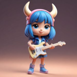 🎸摇滚少女!甜酷吉他手Chibi全身像,专业级C4D渲染! – AI 绘画提示词(中文):