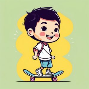 AI art prompt English:Minimalist Kawaii Chibi Skateboard Boy, Full Body Sporty Casual Style