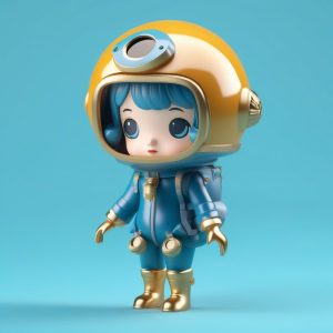 AI art prompt English:Minimalist PopMart Mushroom Suit Chibi Girl Blind Box Doll